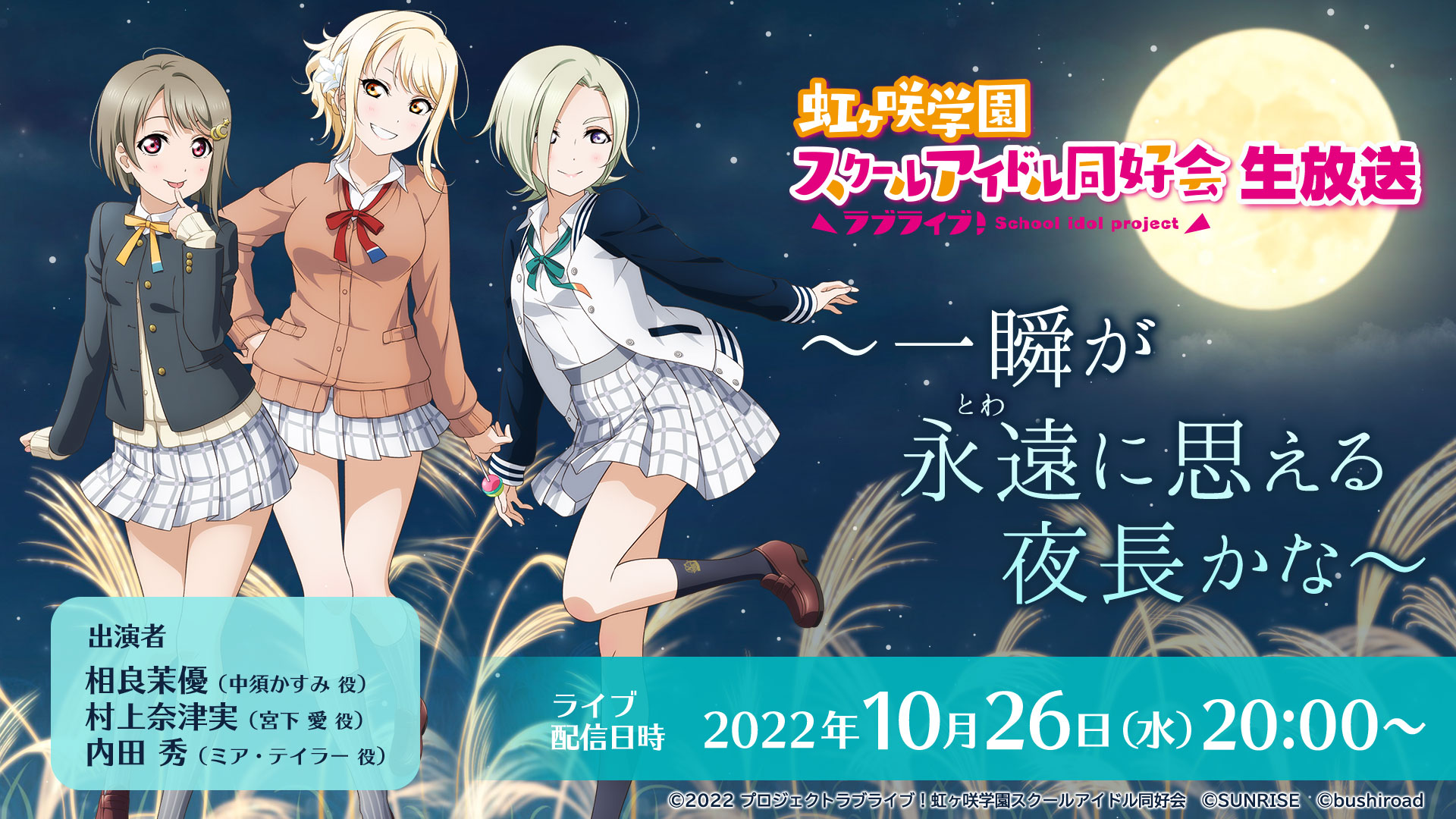 「ラブライブ!虹ヶ咲学園スクールアイドル同好会生放送 〜一瞬が 永遠に思える 夜長かな〜」のお知らせ