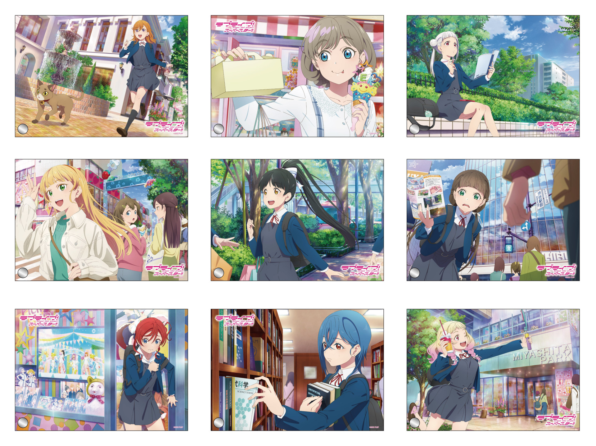 原宿ゲーマーズにて、Liella!のスクエアカンバッジ、ミニアクリルアートが先行発売されます