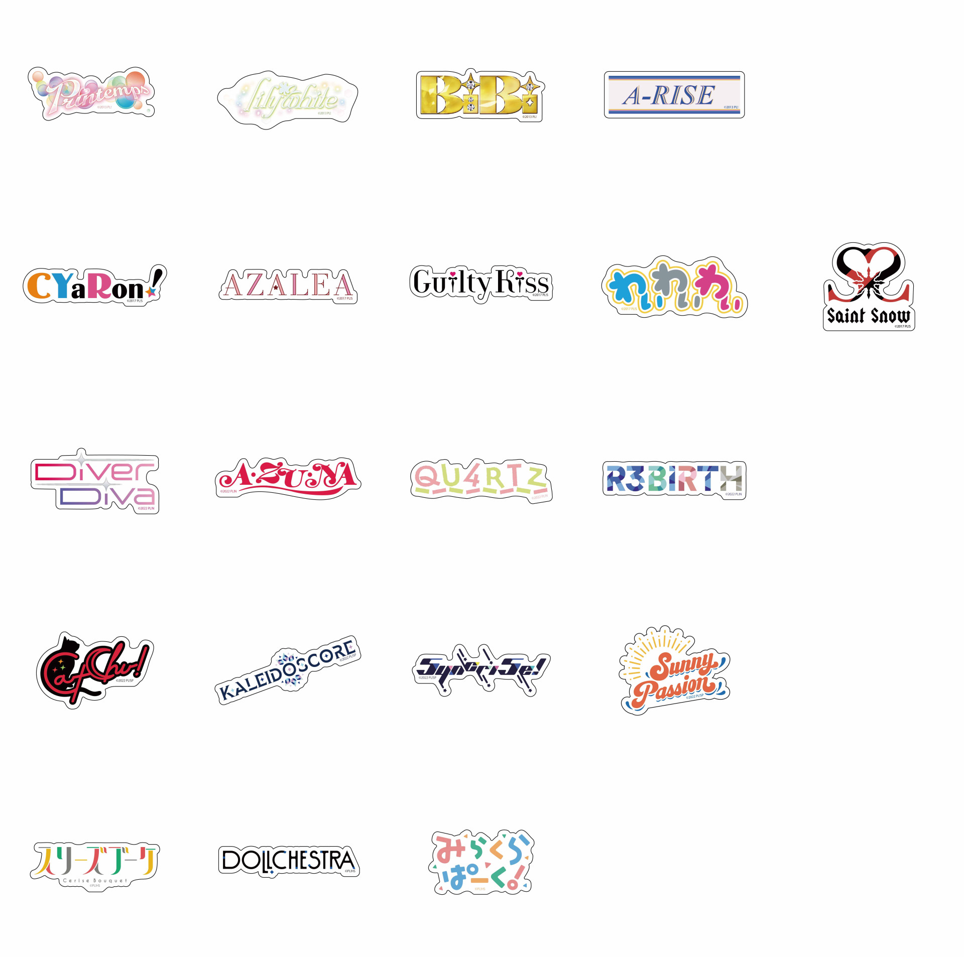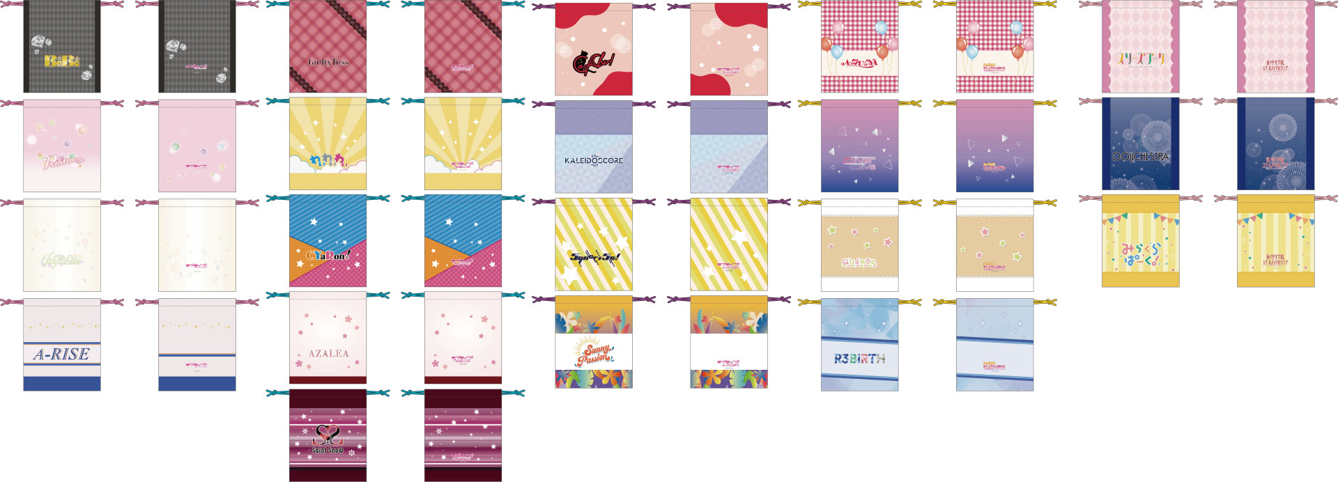 ゲーマーズにて、ラブライブ!シリーズのユニットロゴを使用したタオル、ダイカットステッカー、アクリルキーホルダー、巾着の店舗先行販売と通販受注販売が決定!