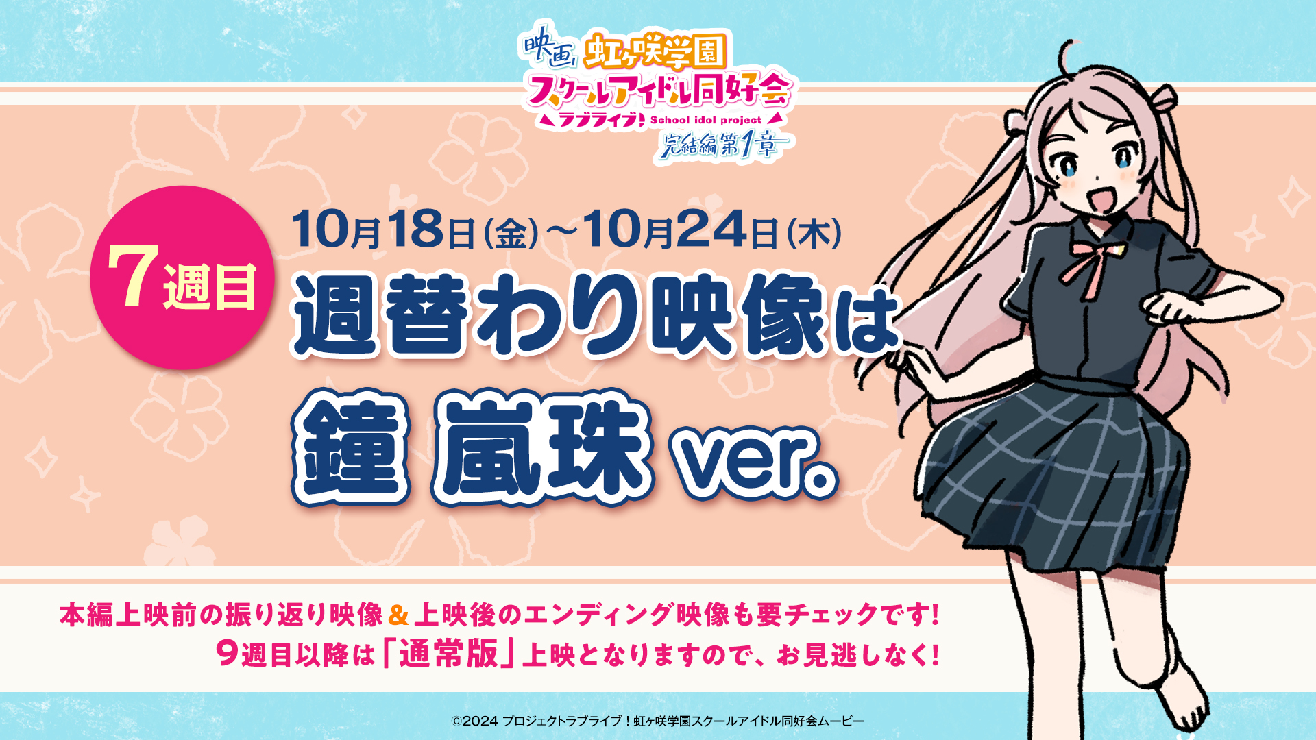 7週目入場者プレゼントは「描き下ろしイラストフォトグラフ」!7週目の週替わり映像は鐘 嵐珠Ver.!