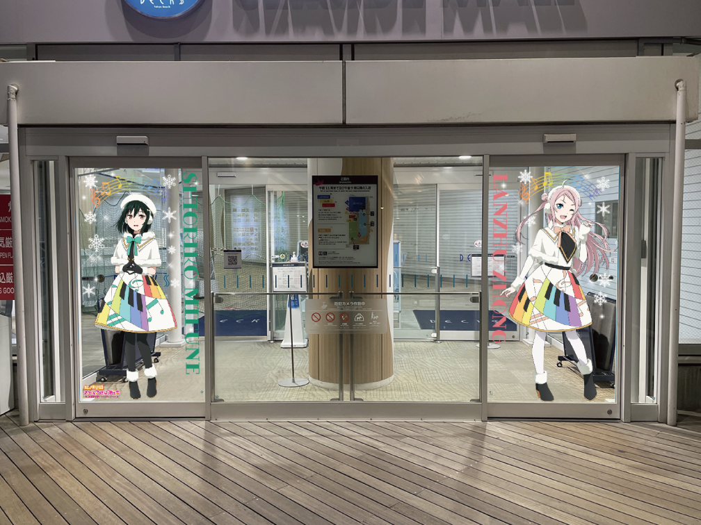デックス3階の入り口には、ニジガクメンバーの装飾が施されたウェルカムドアが登場。