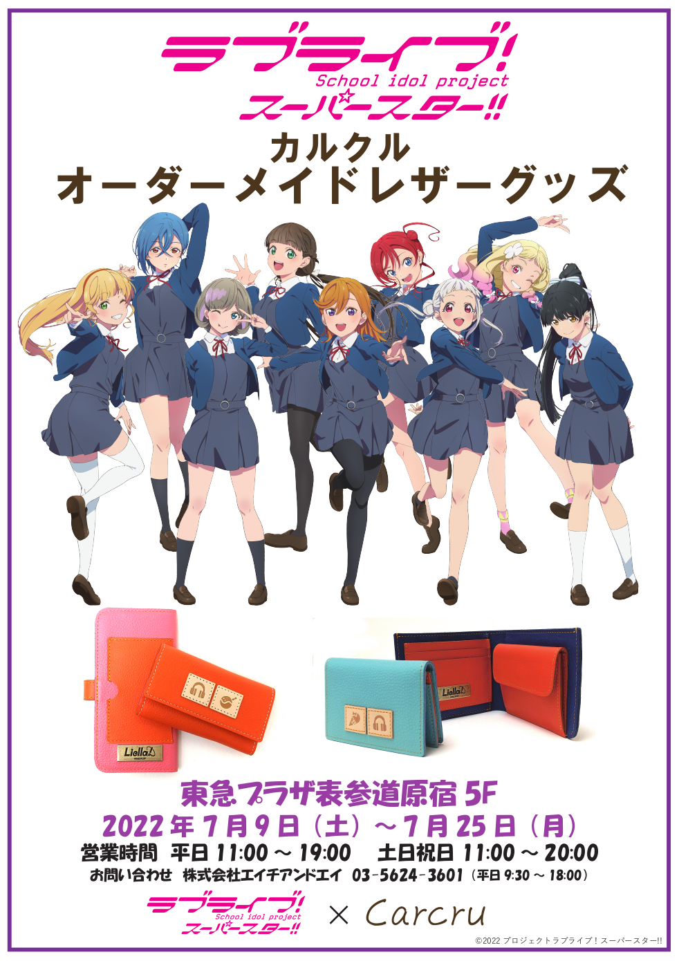 2022年7月9日(土)より東急プラザ表参道原宿 5F特設会場にて、「ラブライブ!スーパースター!!」コラボオーダーメイドレザーグッズのご注文受付を開催しております!