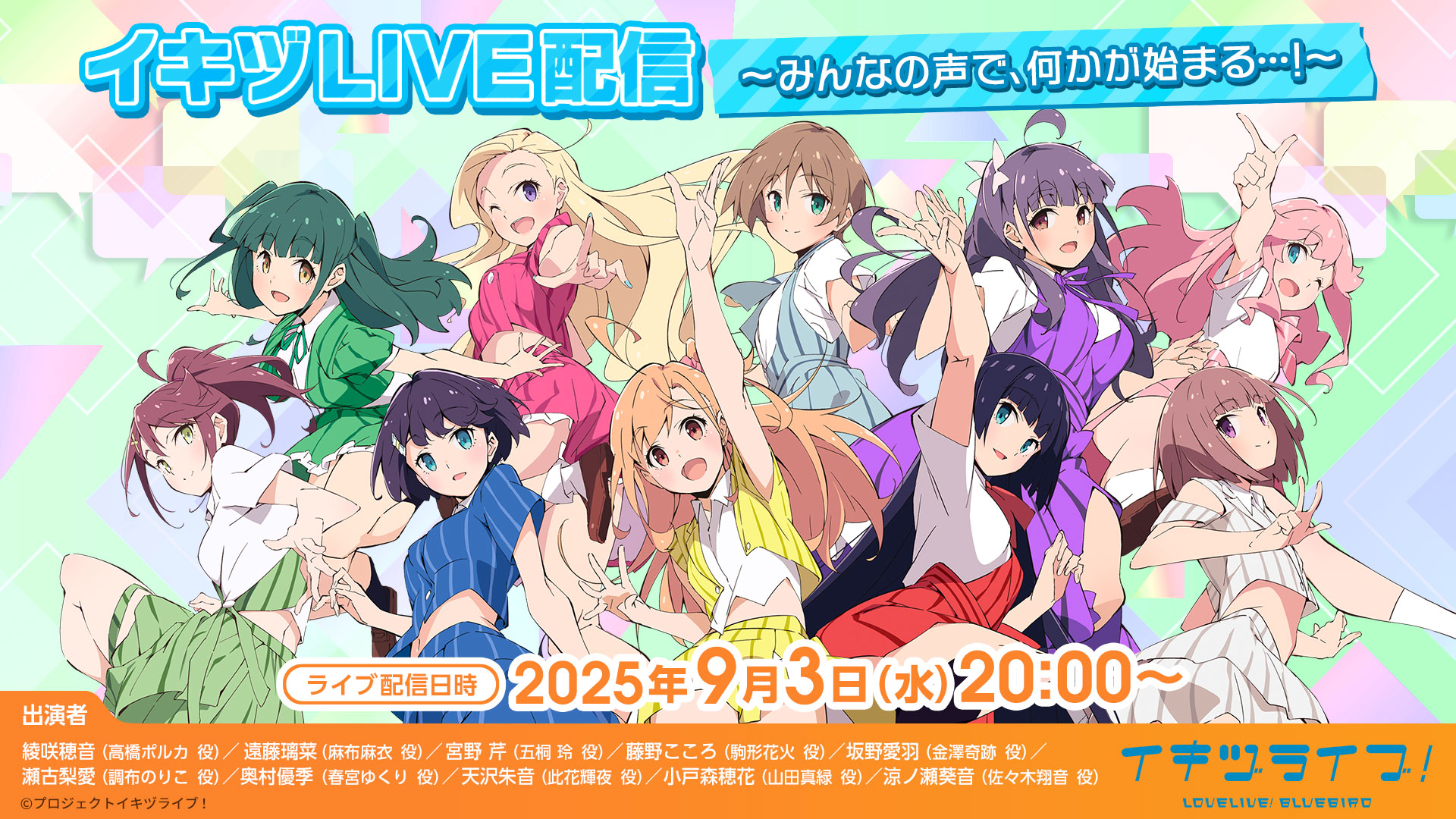 イキヅライブ!LOVELIVE!BLUEBIRD生放送「イキヅLIVE配信~みんなの声で、何かが始まる…!~」のお知らせ