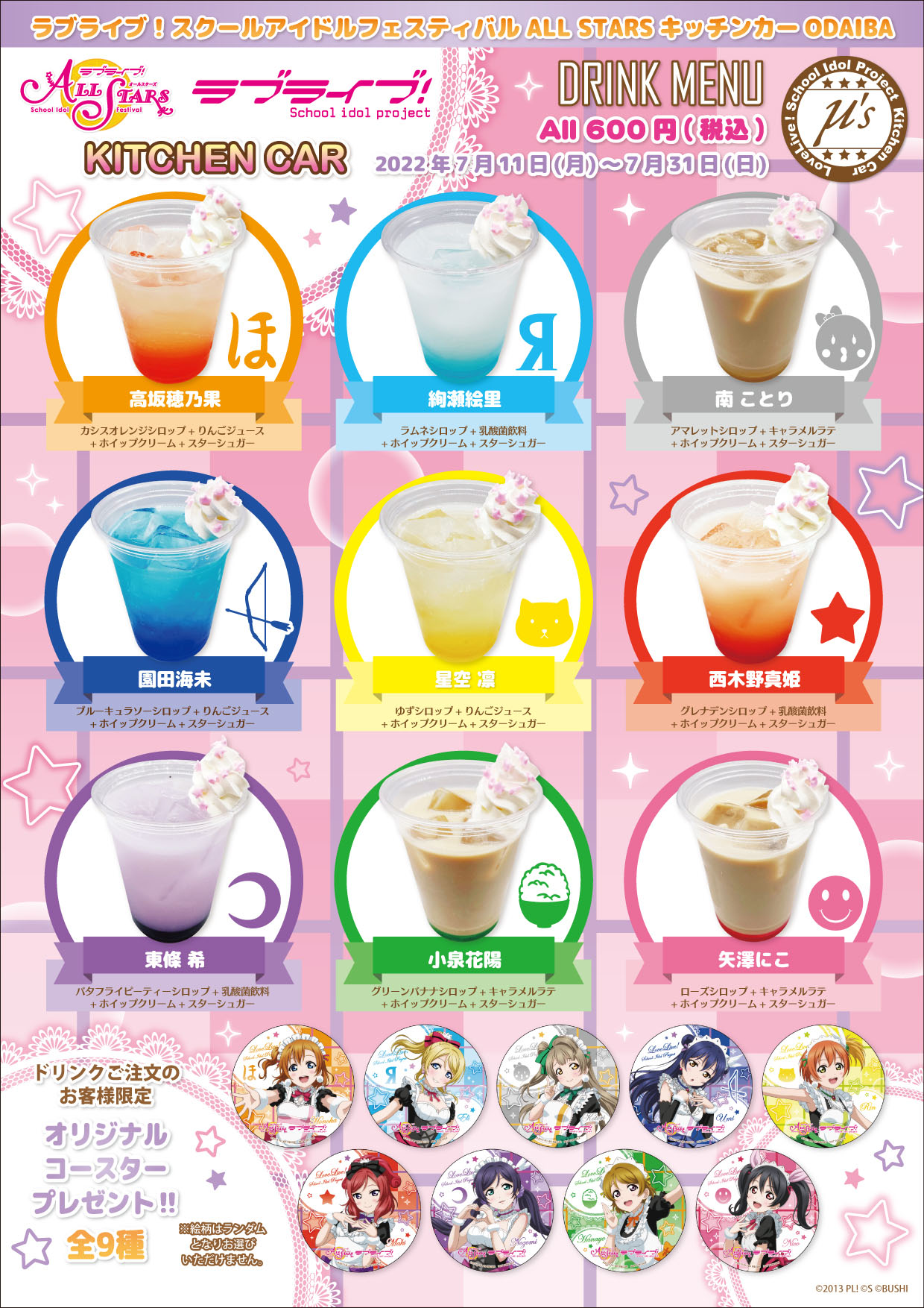 「ラブライブ!スクールアイドルフェスティバル ALL STARS キッチンカー at ODAIBAデックス東京ビーチ」よりメニュー変更のお知らせ