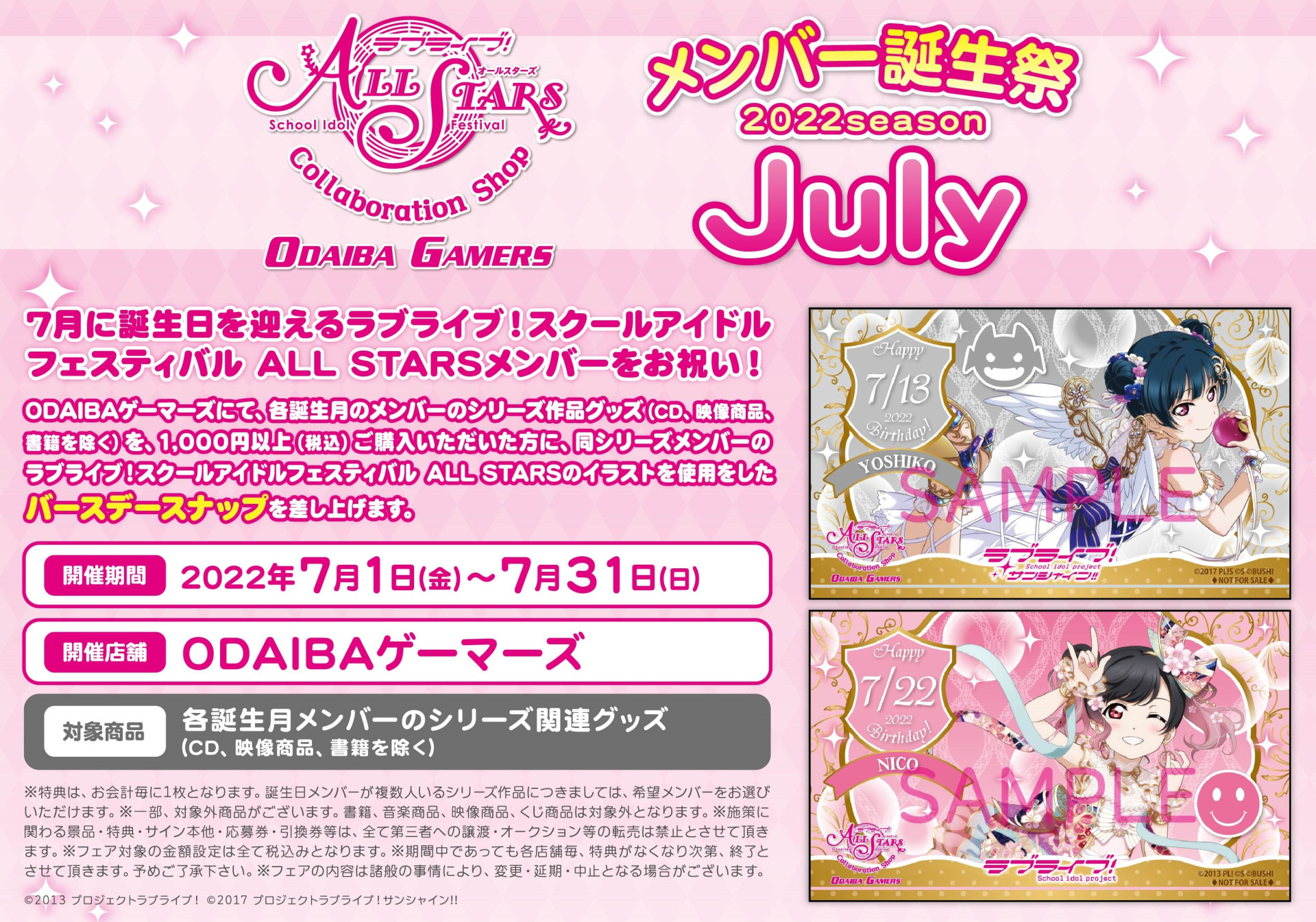 「ラブライブ!スクールアイドルフェスティバル ALL STARS」ゲーマーズ メンバー誕生祭2022season~July~開催のお知らせ
