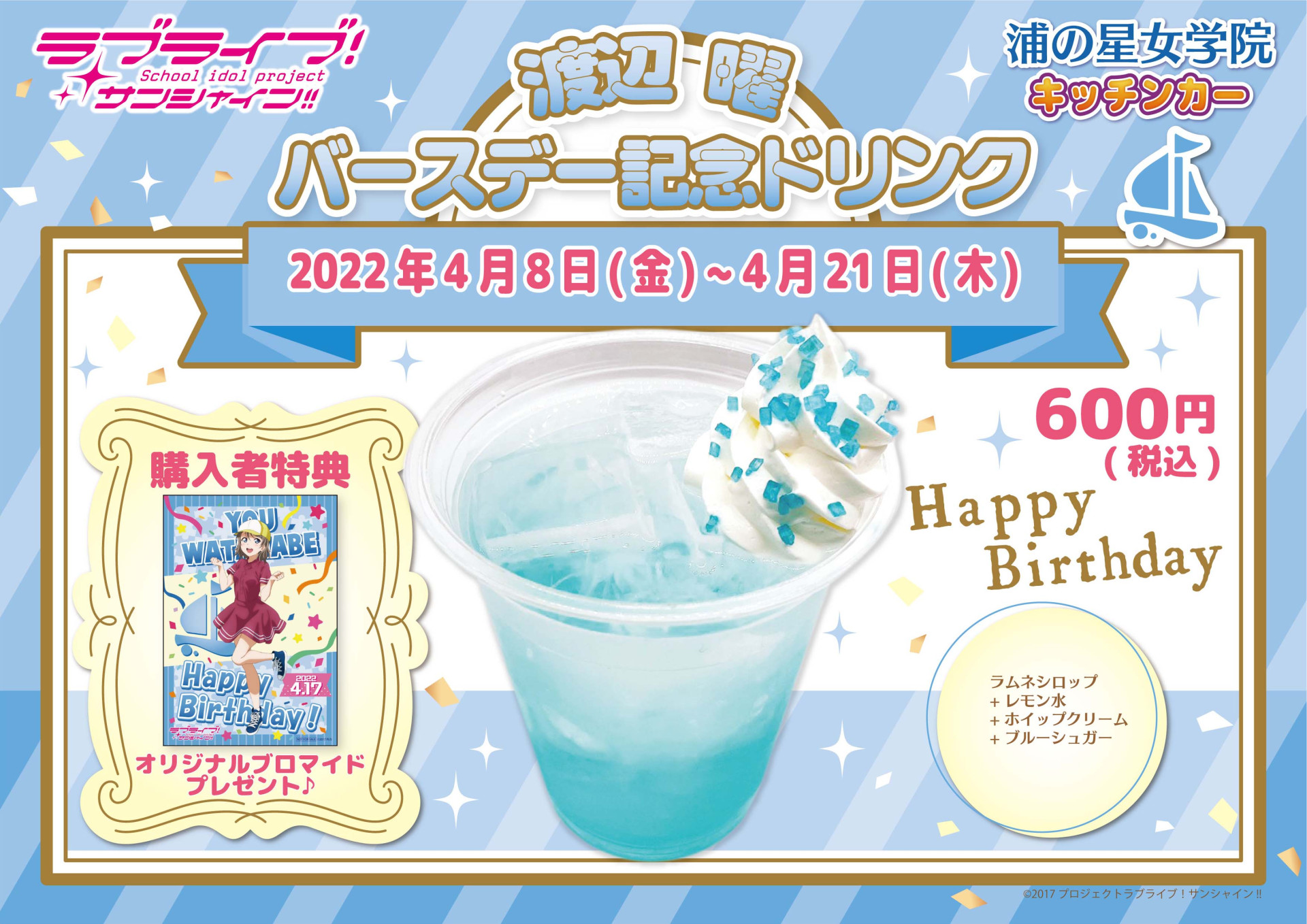 浦の星女学院キッチンカーよりバースデー記念ドリンク販売のお知らせ